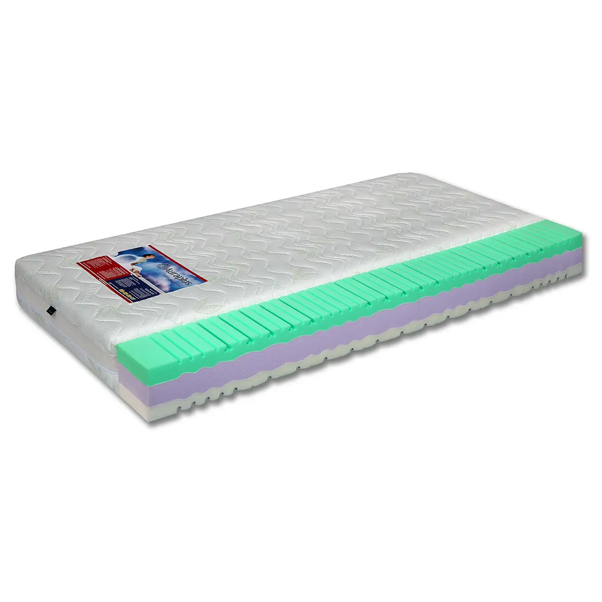 • Čiužinio branduolį sudaro: Viskoelastinė medžiaga T-50 kg/m³ – 5 cm, Padidinto elastingumo putų poliuretanas HR T-42 kg/m³ – 7 cm, Putų poliuretanas T-38 kg/m³ – 6 cm