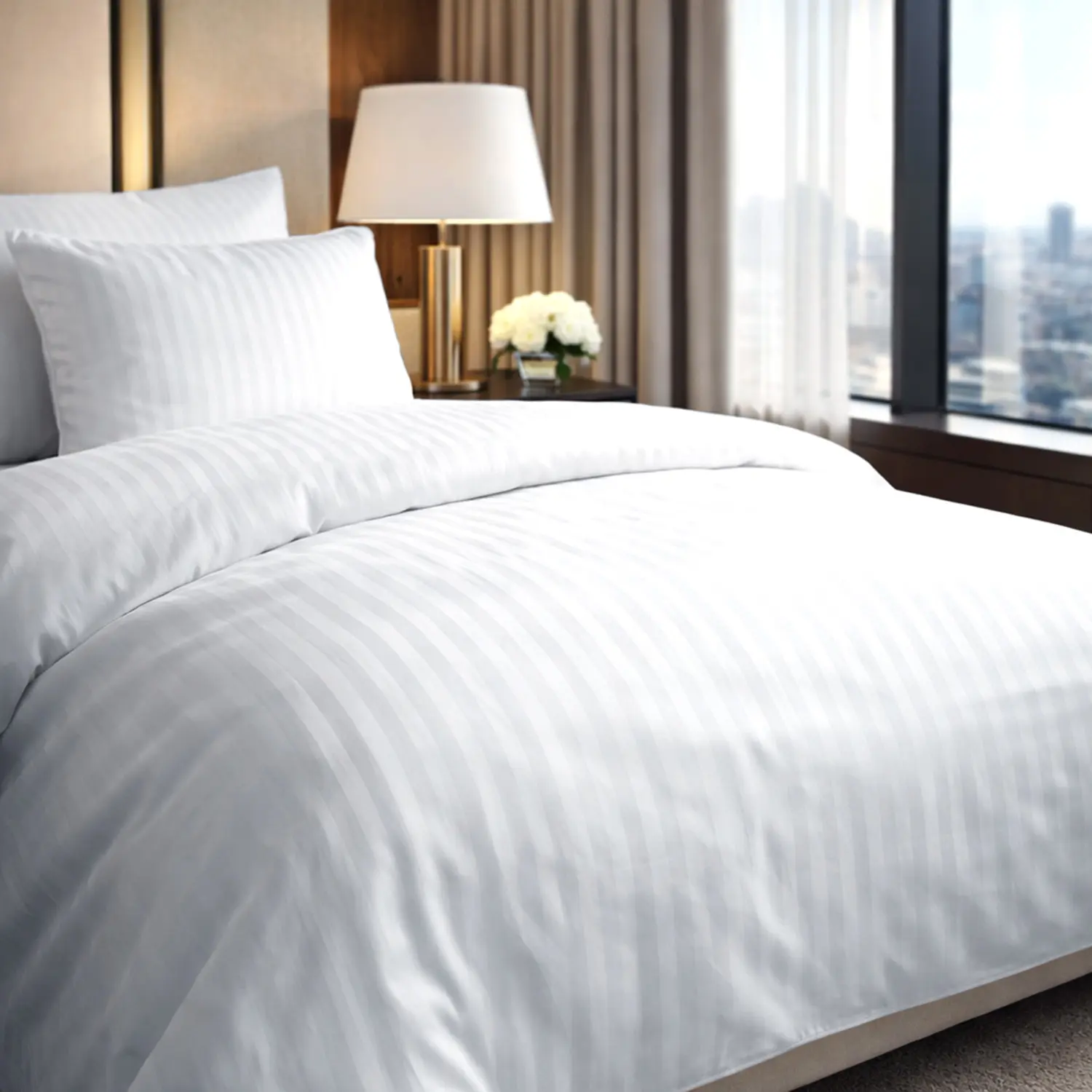 Užvalkalas pasižymi atsparumu glamžymuisi, puikiu oro pralaidumu ir švelnia, glotnia tekstūra, užtikrinančia komfortą net ir dažnai skalbiant. Subtilios 2 cm pločio blizgios juostelės suteikia klasikinei viešbučio patalynei būdingą eleganciją ir tvarkingą, profesionalų įvaizdį.