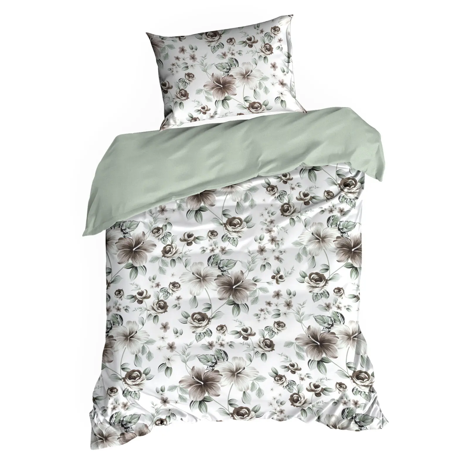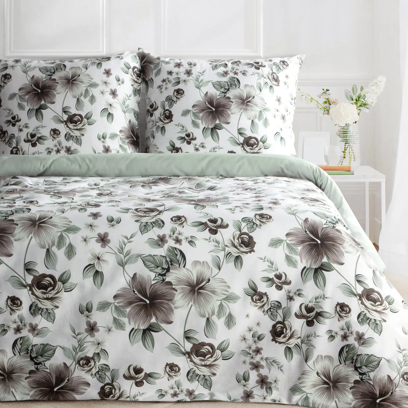 Natūralios ir švelnios 100 % sanforizuotos medvilnės satino patalynės užvalkalų komplektas iš SPRING kolekcijos. Skoningi raštai suderinti su vienspalve puse suteikia elegantiškumo.