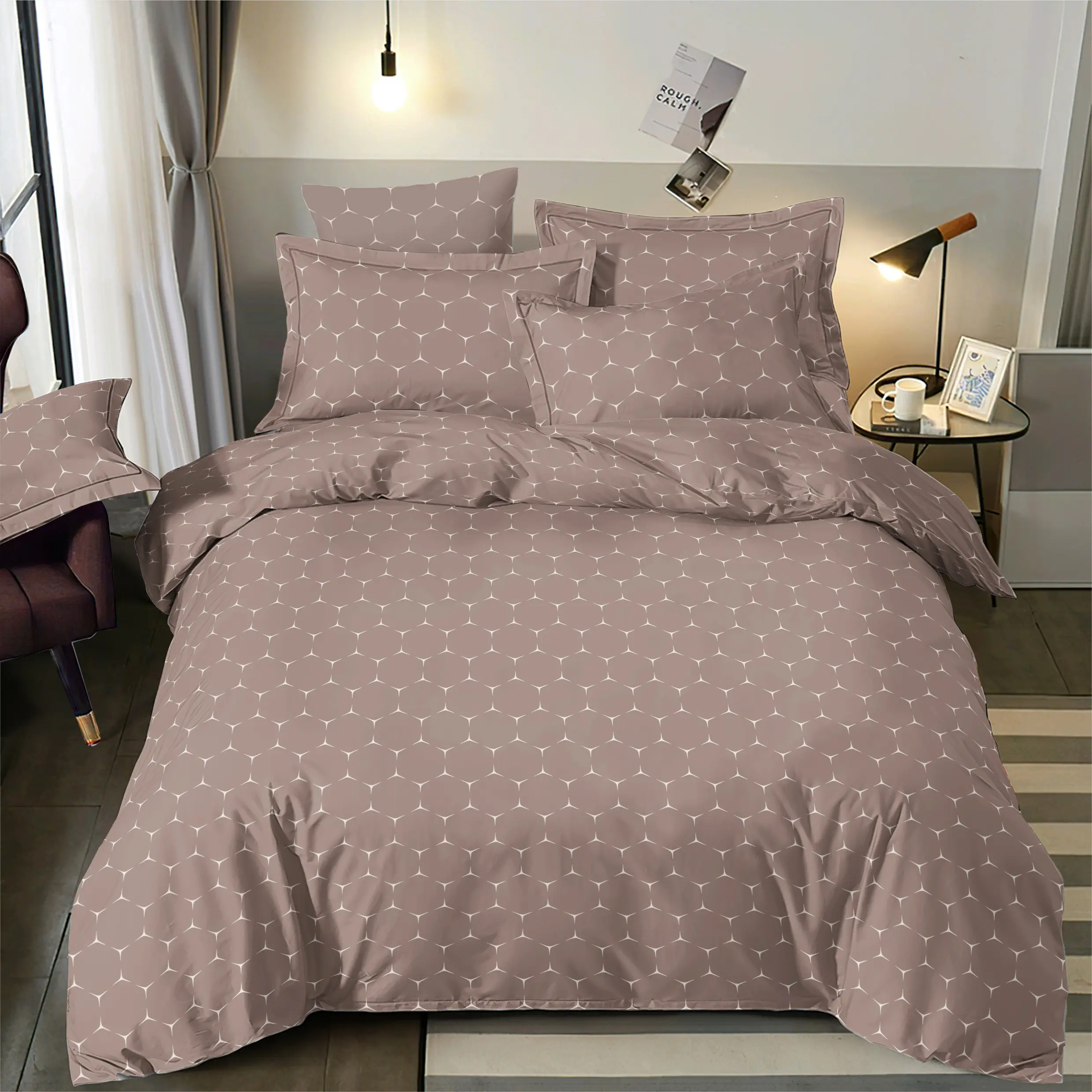 COTTON-146 patalynės komplektai gaminami tik iš aukštos kokybės, storesnio 100% medvilnės audinio, kurio tankis siekia 146g/m².Ši medžiaga užtikrina puikų oro pralaidumą, hipoalergines savybes ir ilgaamžiškumą.Be to, audinys yra ekologiškas ir tvarus. Klasikinis, elegantiškas matinis (neblizgus) paviršius suteikia natūralų minkštumą ir nesenstančią eleganciją.