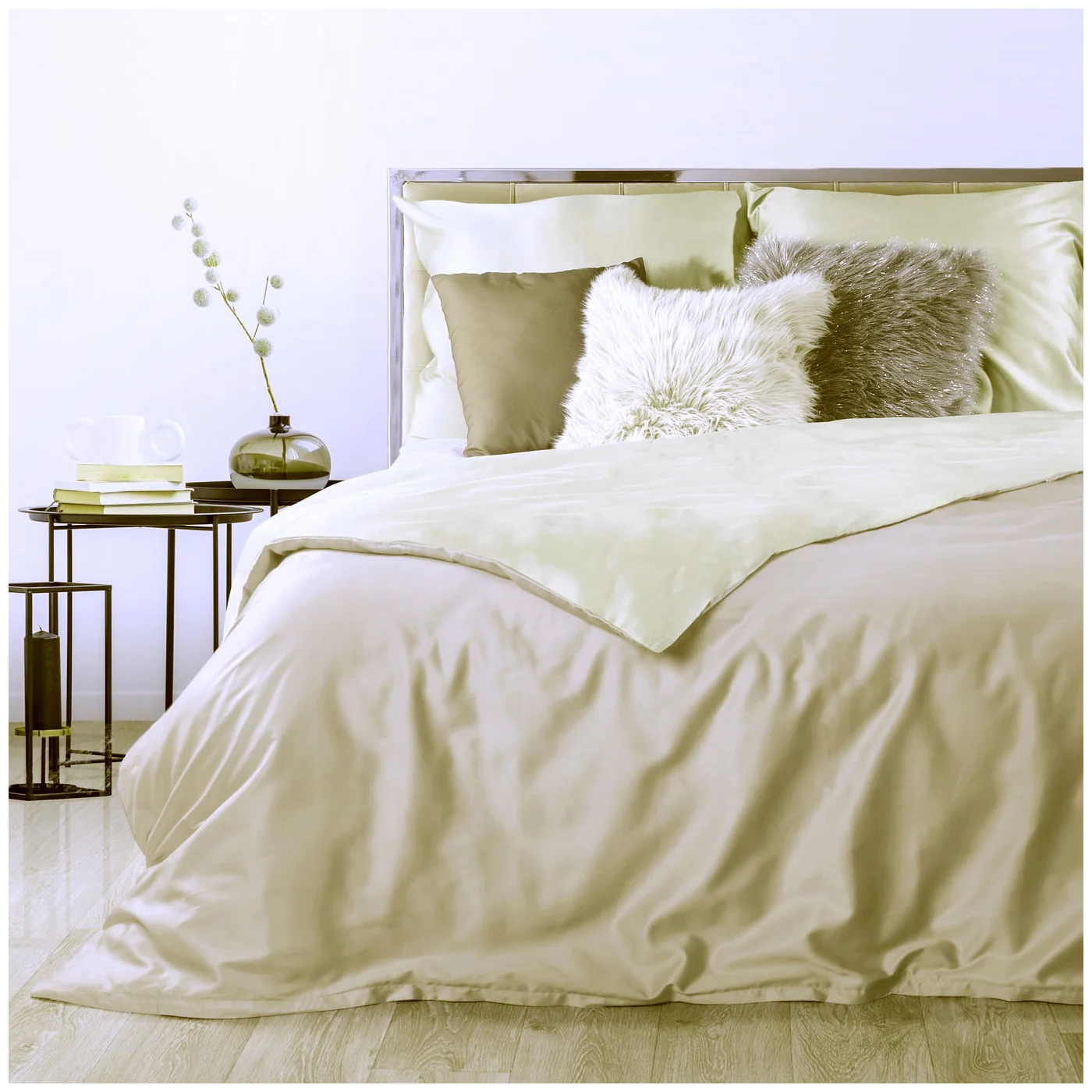 Satininė natūrali medvilnė subtiliai žvilga, yra maloni liesti ir suteikia interjerui rafinuotos elegancijos.