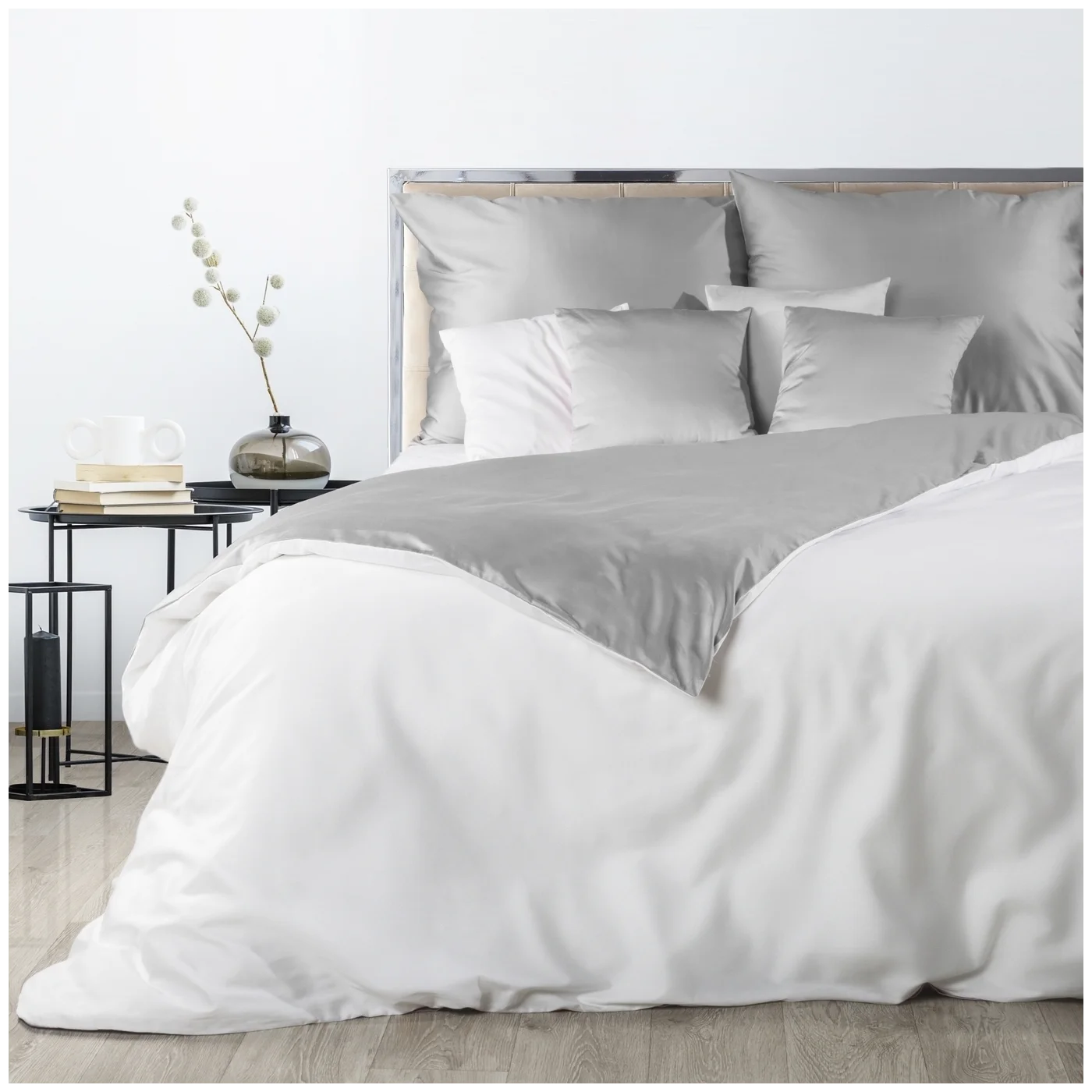 Patalynės užvalkalų komplektas NOVA SATIN 125 | WHITE – SILVER