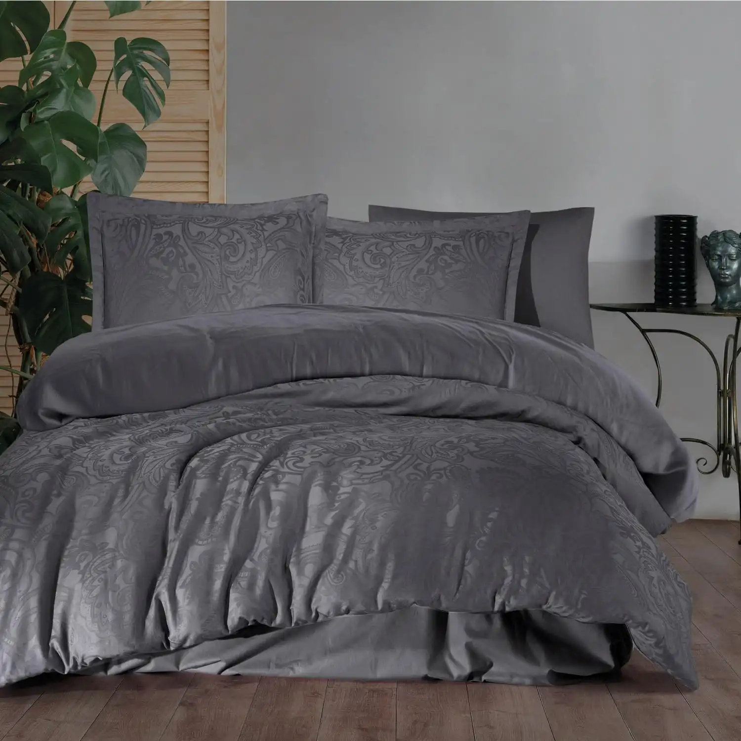 Aukštos klasės patalynės užvalkalų komplektai iš kolekcijos Satin Jacquard - Luxury, tai kokybė, prabanga ir elegancija. Pagaminti iš labai aukštos kokybės medvilnės satino, NE40/01 TC200. Siūlai dar prieš audžiant yra dažomi, todėl išgaunamas natūralus švelnumas ir žvilgesys. Išausti naudojant daugiasluoksnę žakardo techniką.