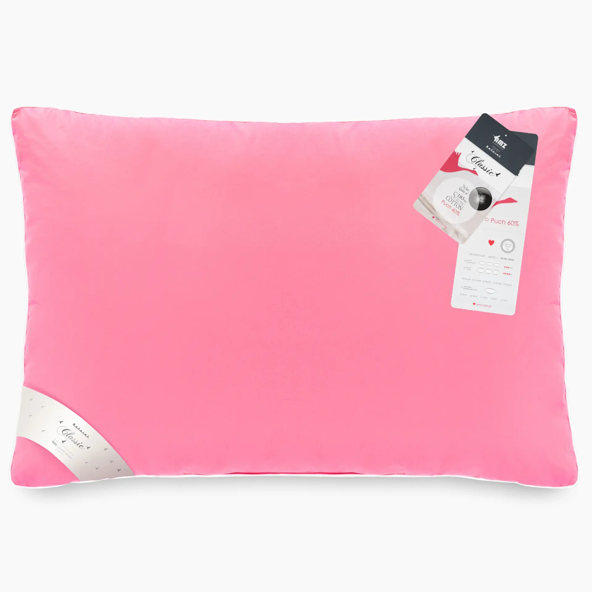 Pūkinė pagalvė CLASSIC-60 | ROŽINĖ | 60% ŽĄSŲ PŪKAI | NATURAL CLASSIC