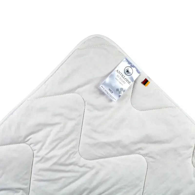 - Antklodės užpildui naudojamas šilkverpių šilko pluoštas. Antklodės viršutinis audinys pagamintas iš aukštos kokybės Perkalio medvilnės