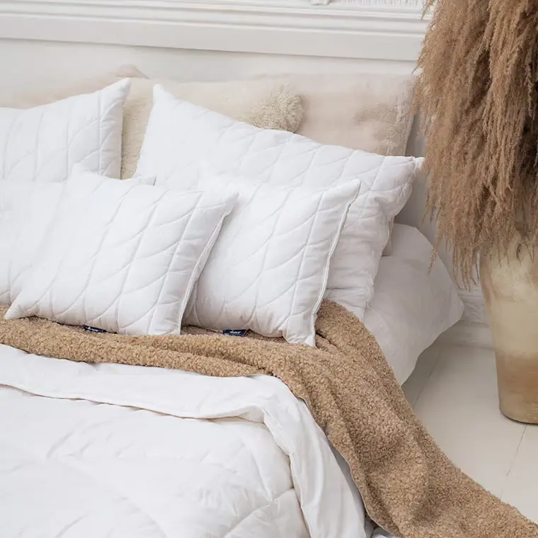 - Kašmyro ožkų ir merino avių vilnos derinys suteikia pagalvei patvarumo